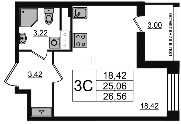 Трехкомнатные квартиры (1 квартира, 1 планировка)