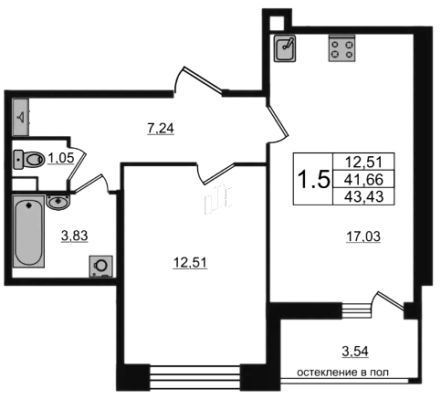 Однокомнатные квартиры (7 квартир, 7 планировок)