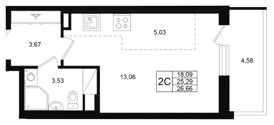 Студия (5 квартир, 5 планировок)