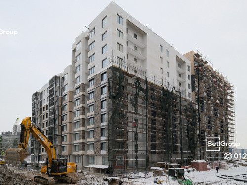 - Ведутся работы по устройству монолитного каркаса технического этажа.