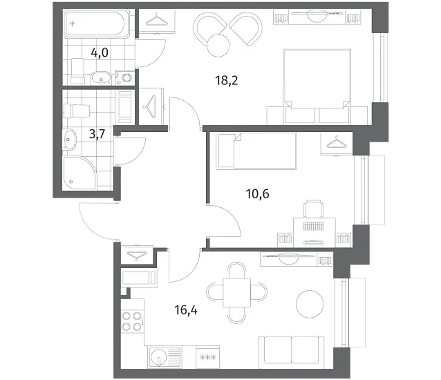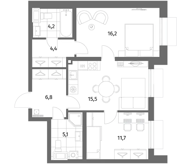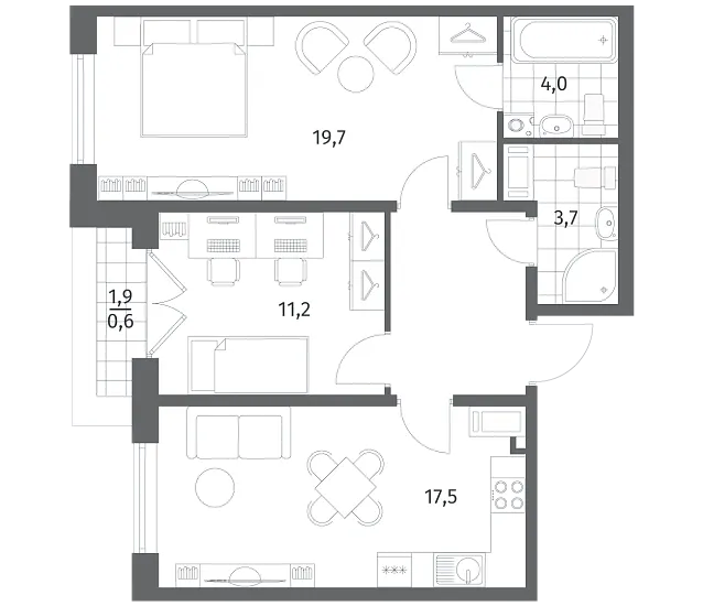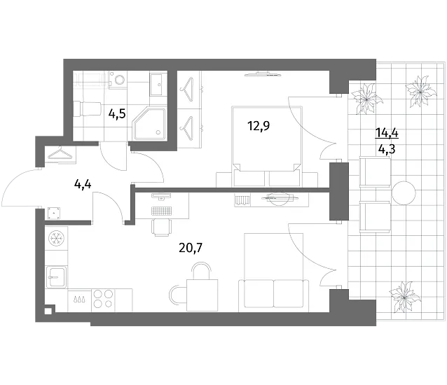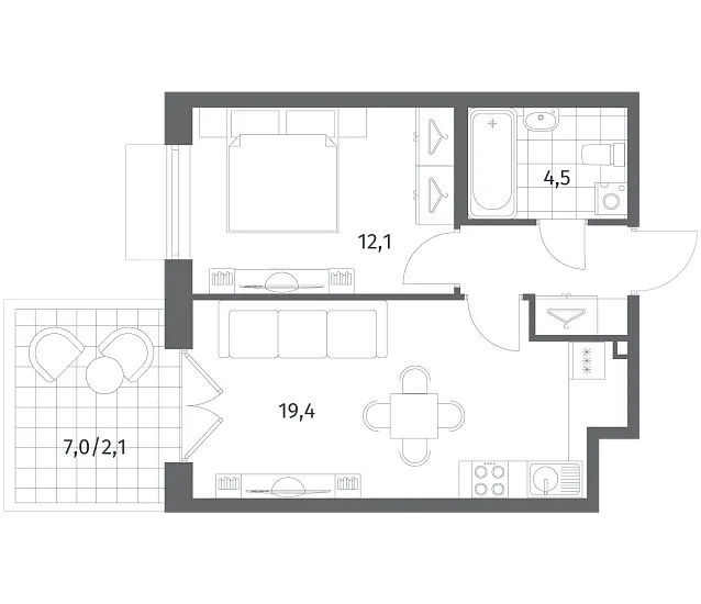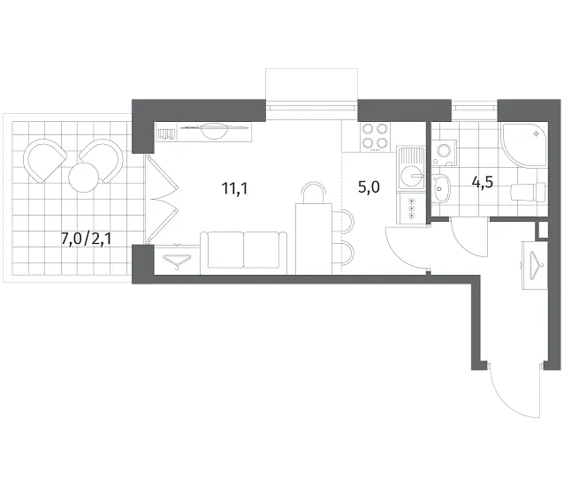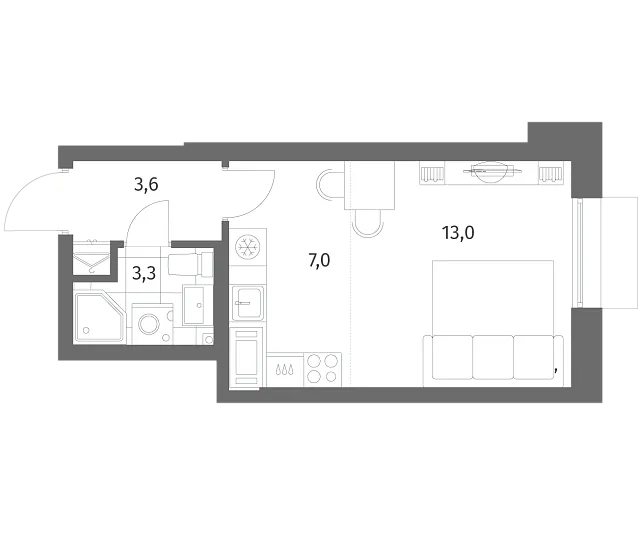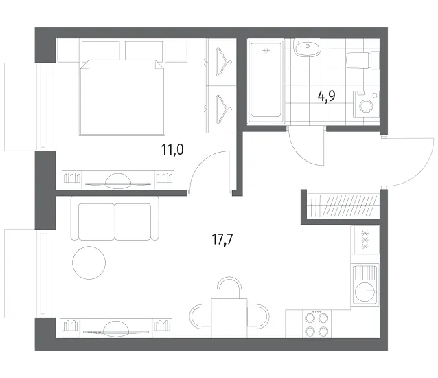 Однокомнатные квартиры (7 квартир, 7 планировок)