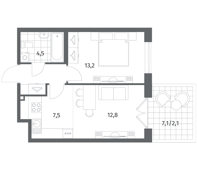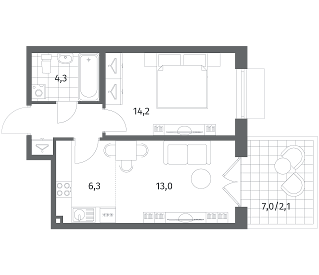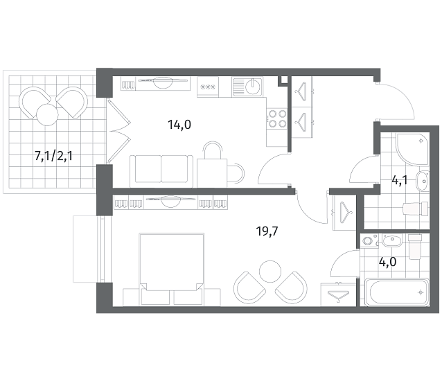 Однокомнатные квартиры (14 квартир, 14 планировок)
