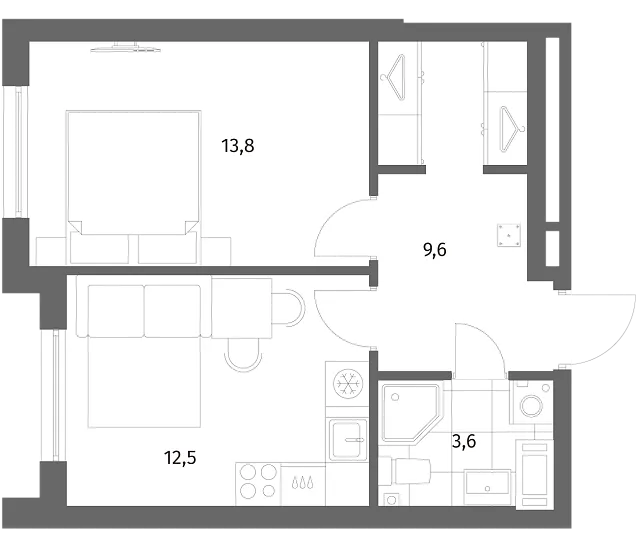 Однокомнатные квартиры (13 квартир, 13 планировок)