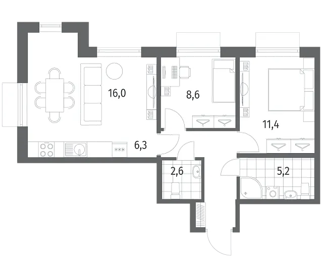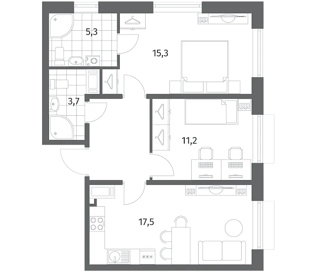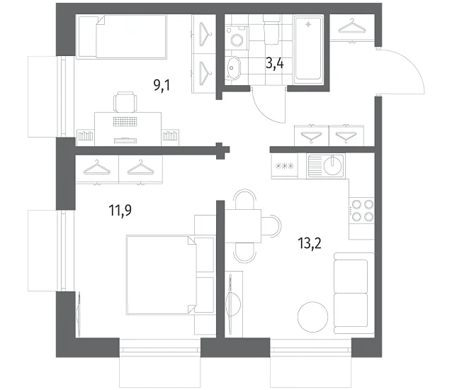 Двухкомнатные квартиры (11 квартир, 11 планировок)