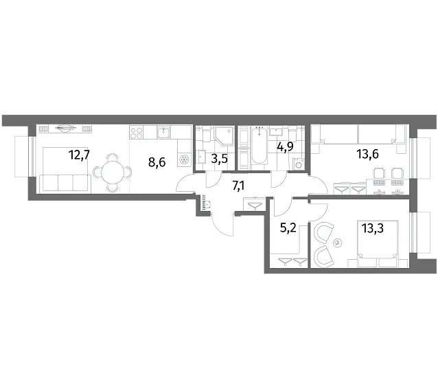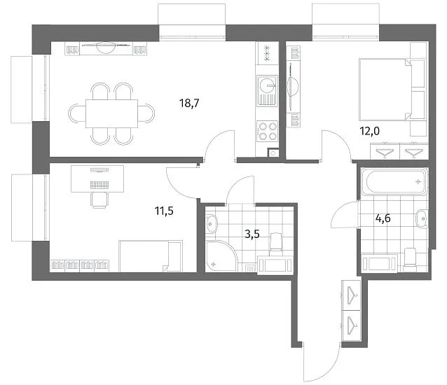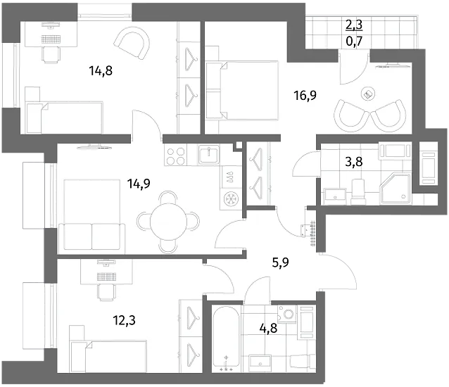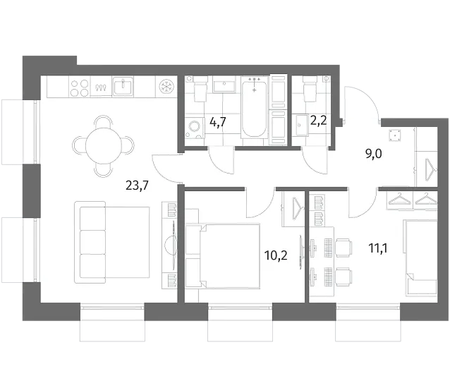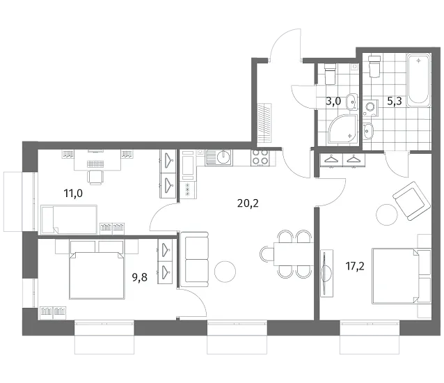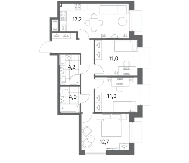 Трехкомнатные квартиры (11 квартир, 11 планировок)