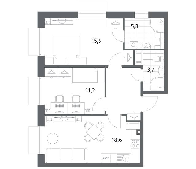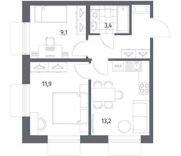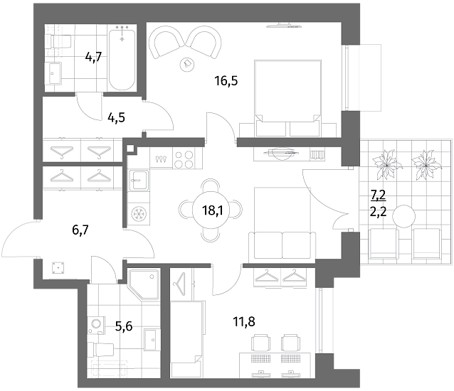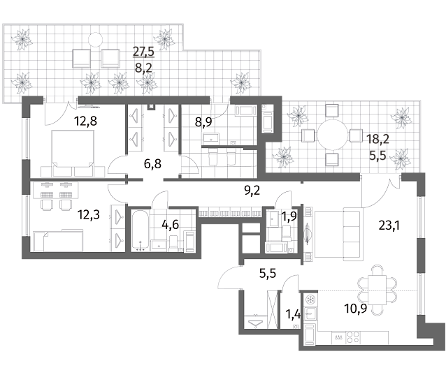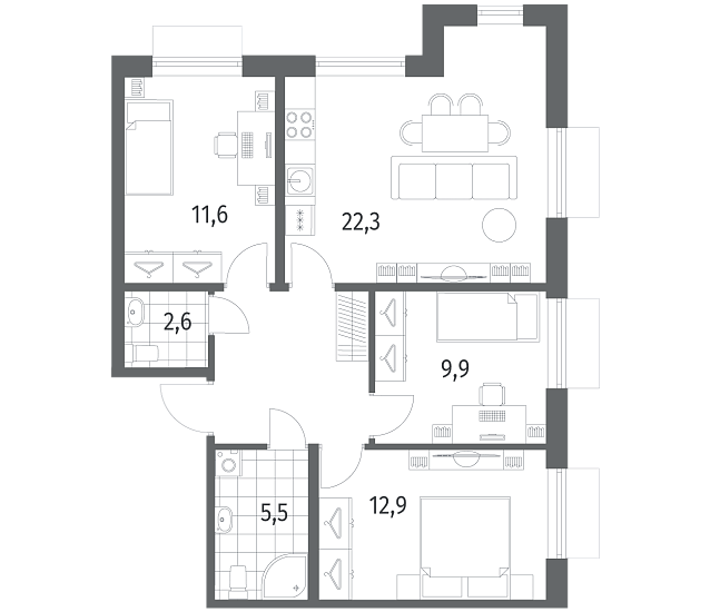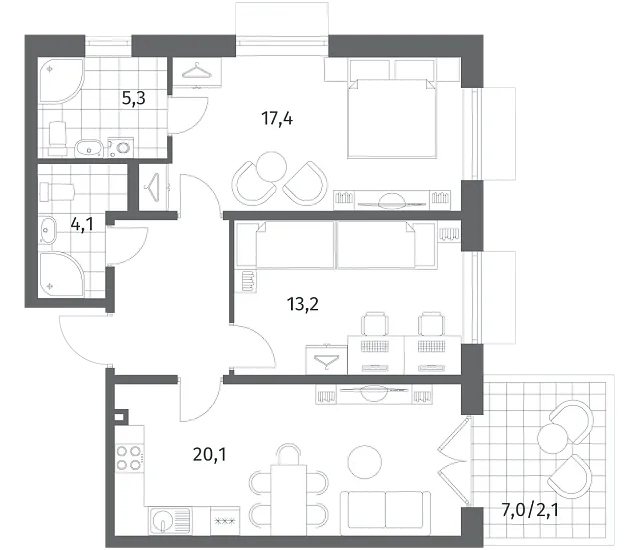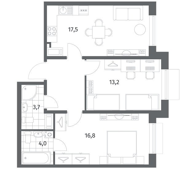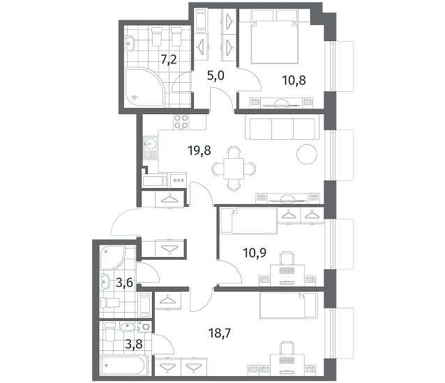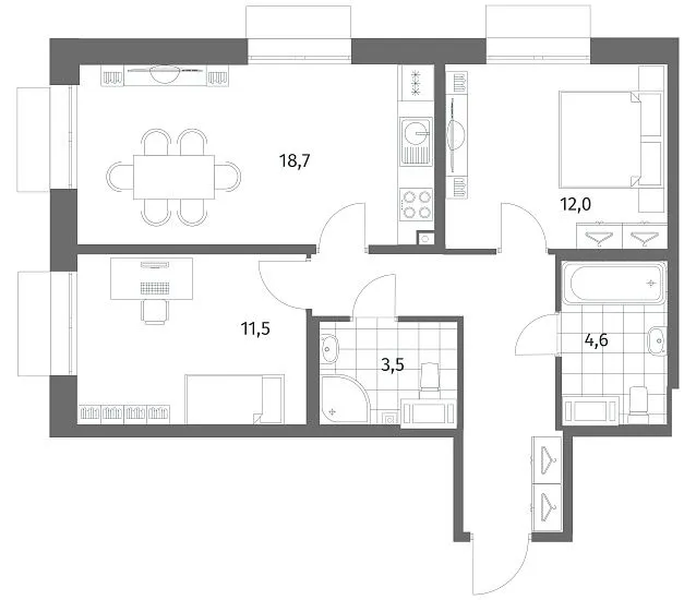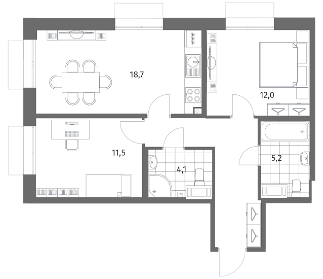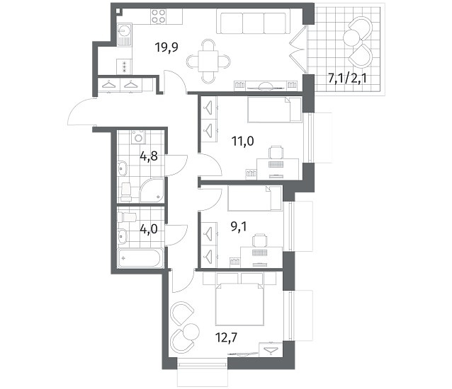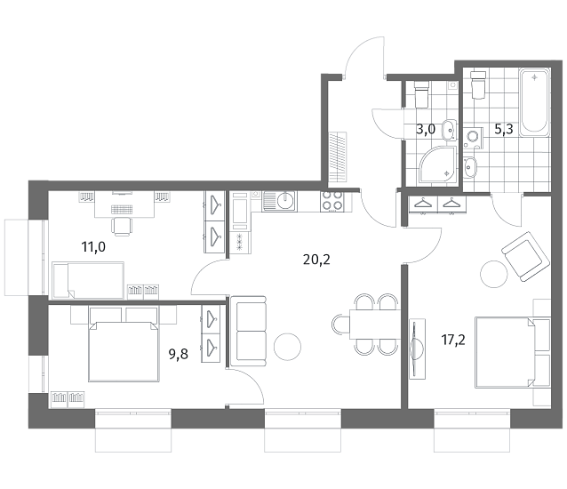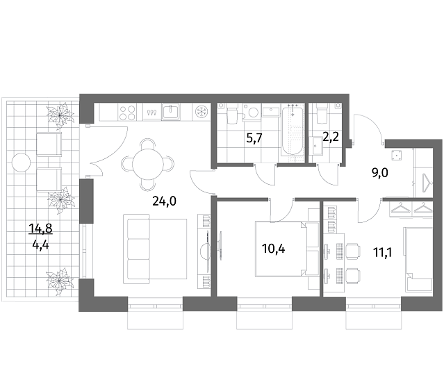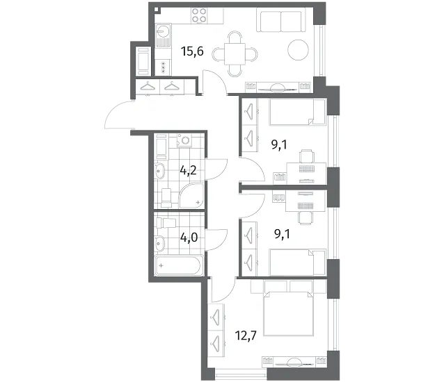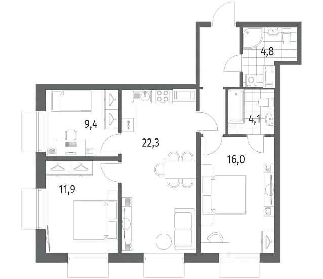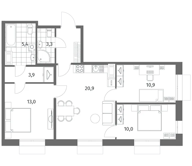Трехкомнатные квартиры (31 квартира, 31 планировка)