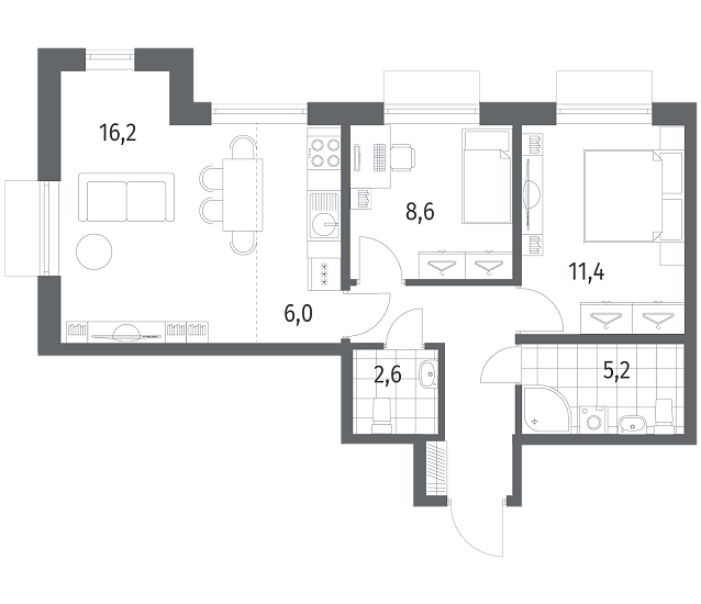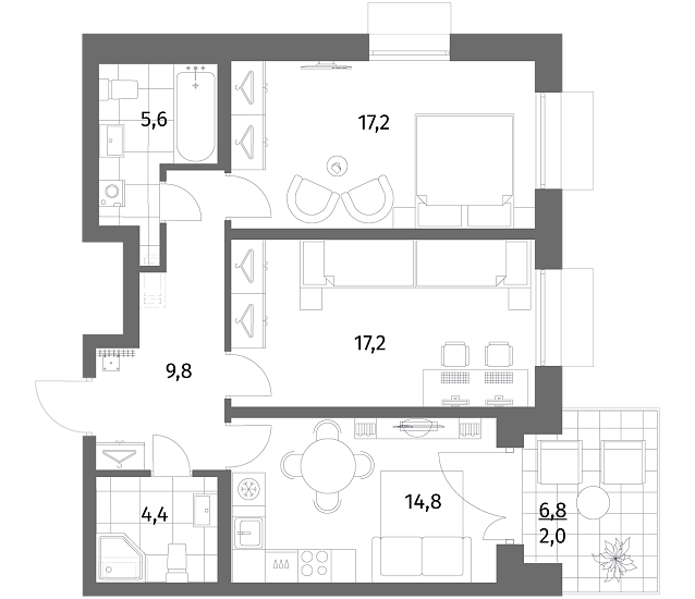 Двухкомнатные квартиры (27 квартир, 27 планировок)