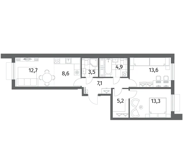 Четырехкомнатные квартиры (1 квартира, 1 планировка)