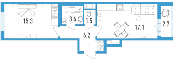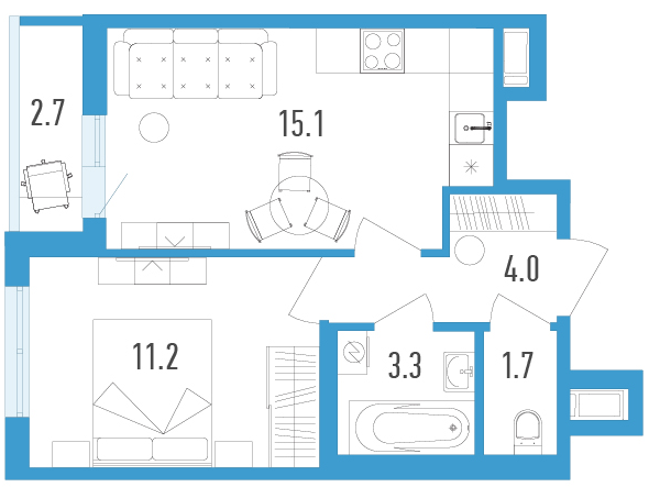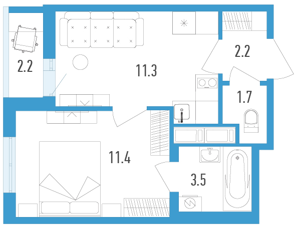 Однокомнатные квартиры (3 квартиры, 3 планировки)