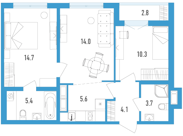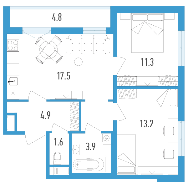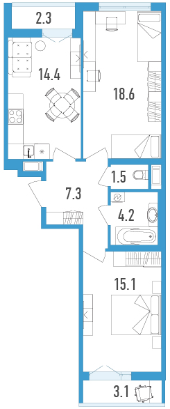 Двухкомнатные квартиры (3 квартиры, 3 планировки)