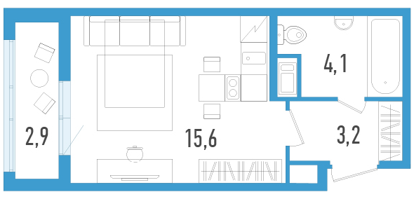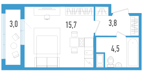 Однокомнатные квартиры (3 квартиры, 3 планировки)