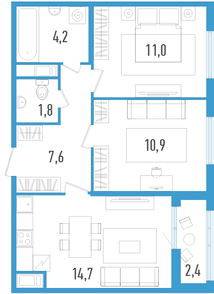 Двухкомнатные квартиры (2 квартиры, 2 планировки)