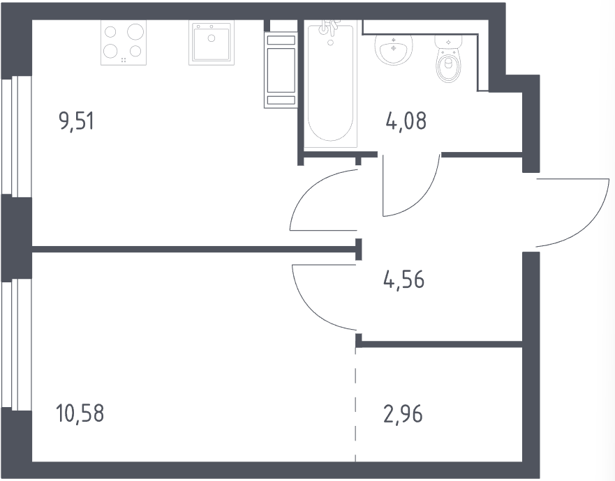 Однокомнатные квартиры (6 квартир, 6 планировок)