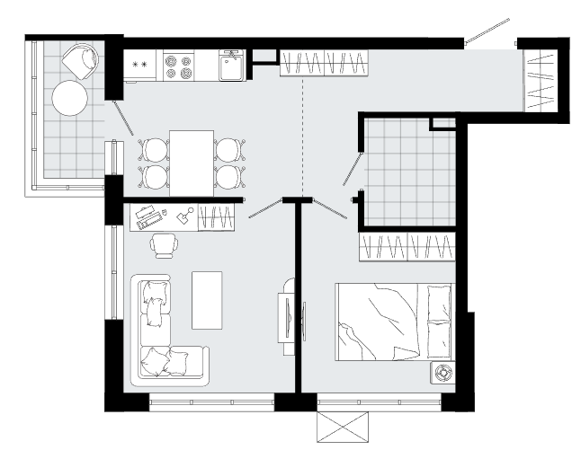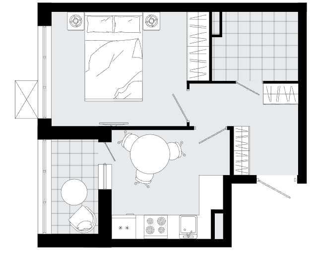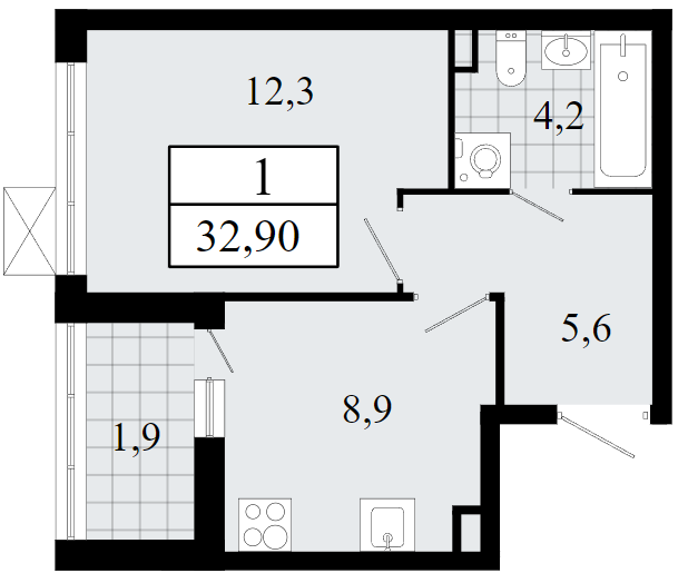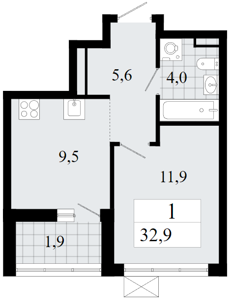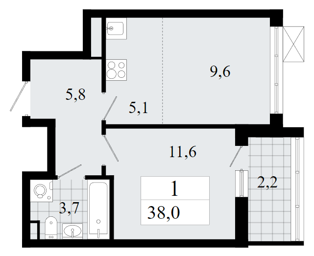 Однокомнатные квартиры (5 квартир, 5 планировок)