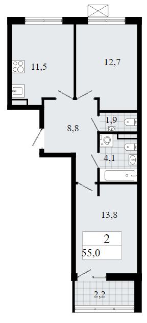 Двухкомнатные квартиры (6 квартир, 6 планировок)
