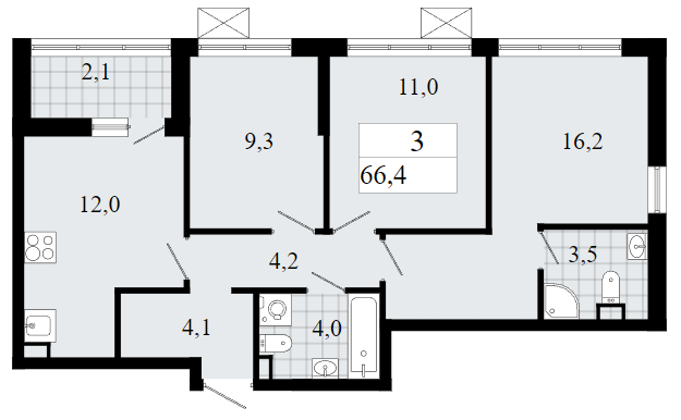 | 66.9 м2 | 36.5 | 12.1 | 10 этаж | Сдана | 1.3 корпус 1.3 корпус | 196 010 a/м2 | 13 113 069 руб |