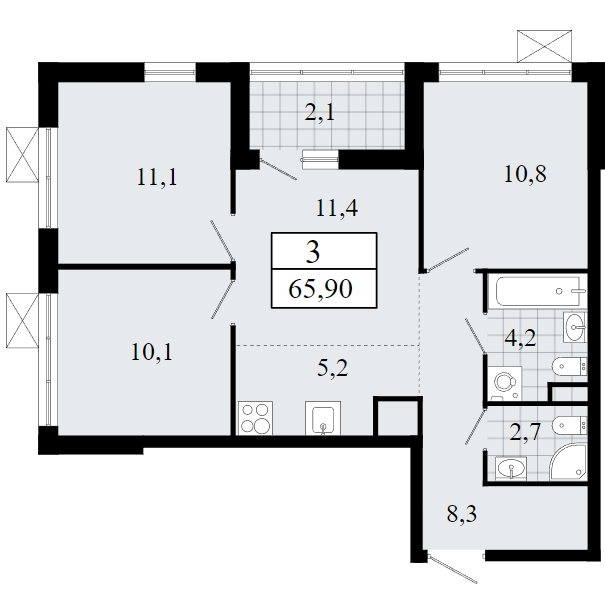 Трехкомнатные квартиры (1 квартира, 1 планировка)