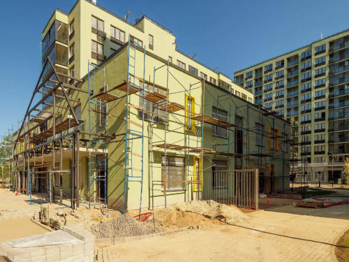 - Ведётся оштукатуривание и финишная покраска фасада.