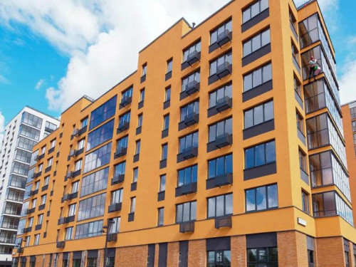 - Ведется устройство утеплителя мокрого фасада, ведутся штукатурные работы фасада