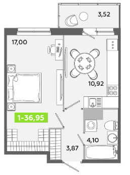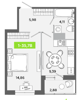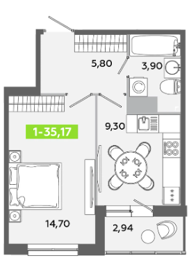 Однокомнатные квартиры (5 квартир, 4 планировки)