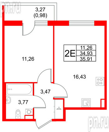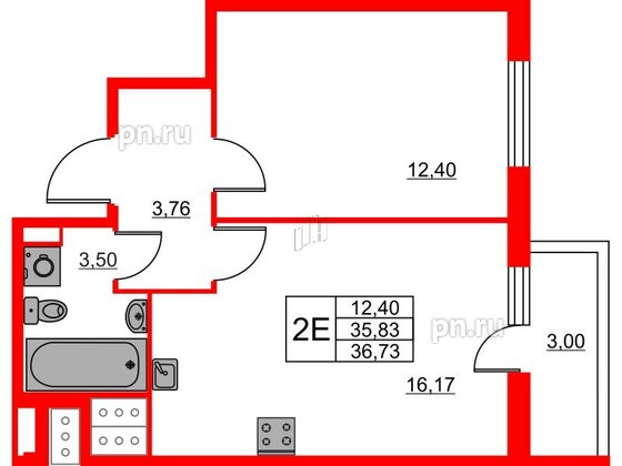 Двухкомнатные квартиры (1 квартира, 1 планировка)