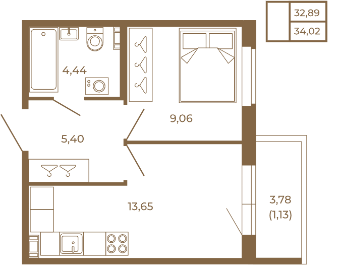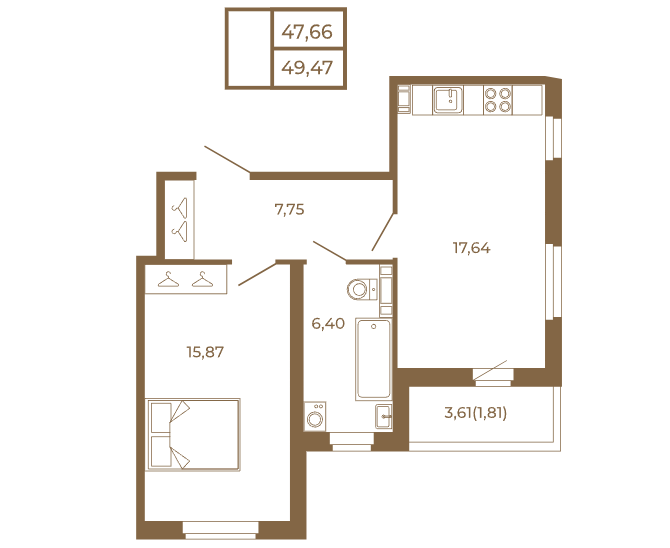 Однокомнатные квартиры (4 квартиры, 4 планировки)
