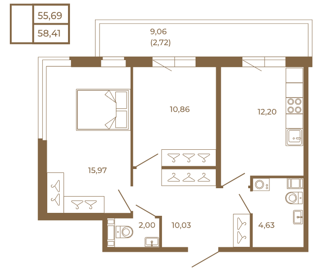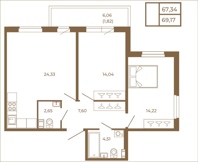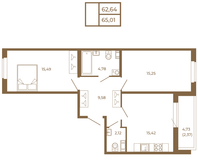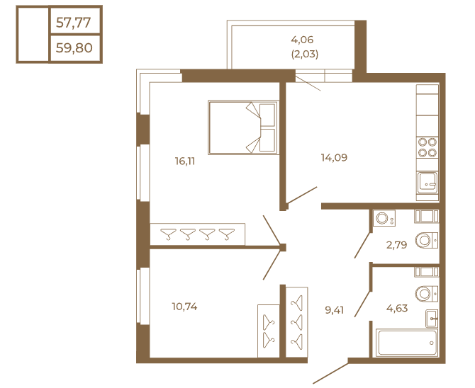 Двухкомнатные квартиры (4 квартиры, 4 планировки)