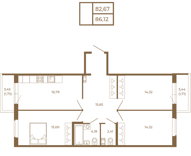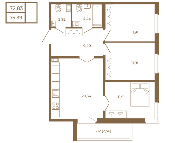 Трехкомнатные квартиры (12 квартир, 12 планировок)