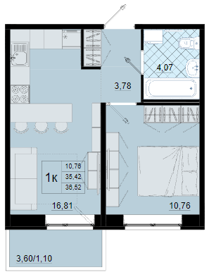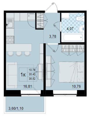 Однокомнатные квартиры (3 квартиры, 3 планировки)
