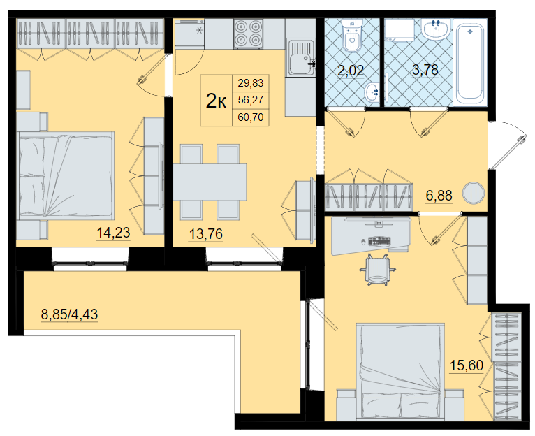 Двухкомнатные квартиры (3 квартиры, 3 планировки)