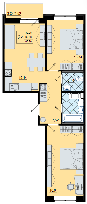 Двухкомнатные квартиры (2 квартиры, 2 планировки)