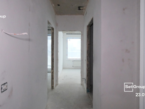 - Завершены работы по оштукатуриванию стен квартир и МОП.