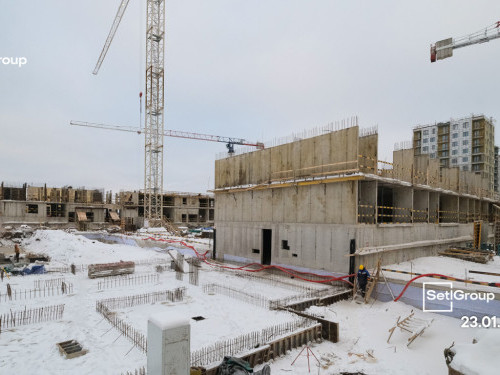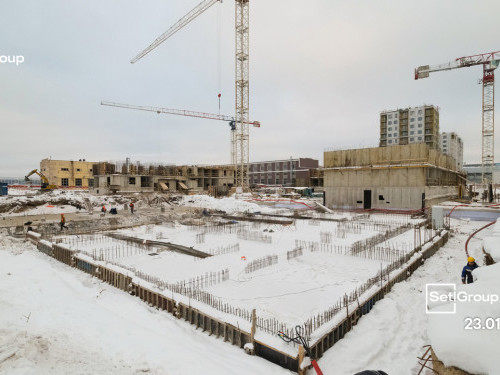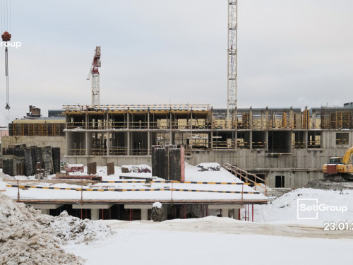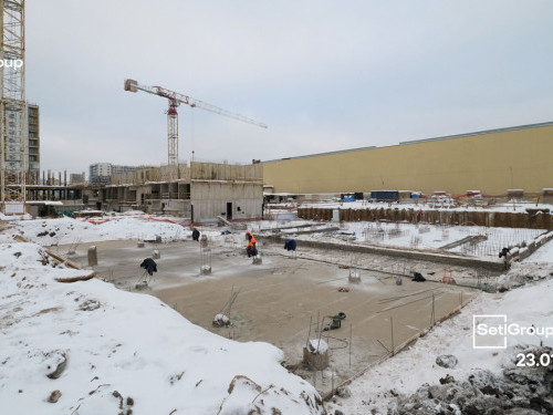 - Начаты работы по устройству стен, колонн, перекрытий выше нулевой отметки.