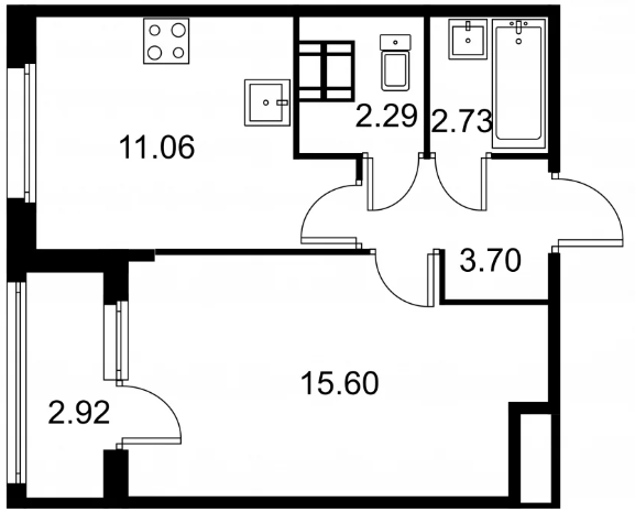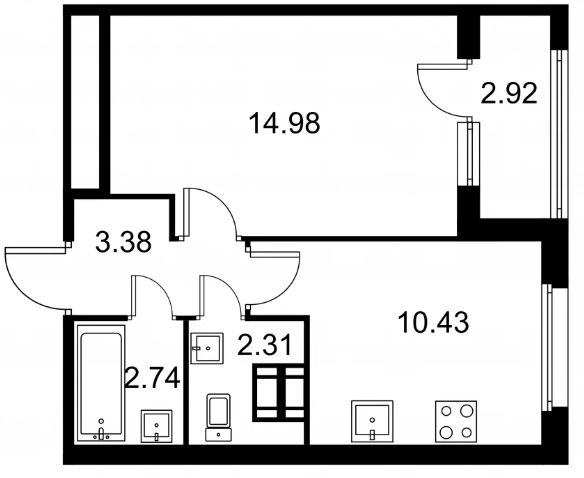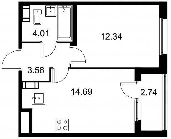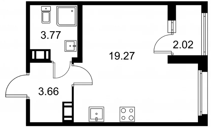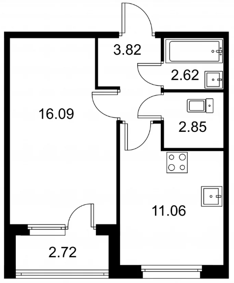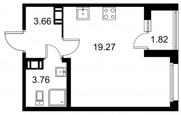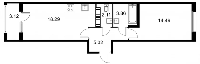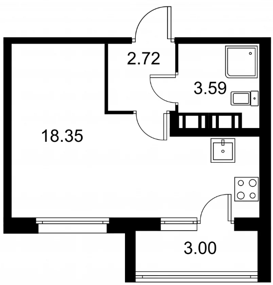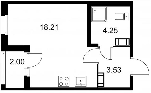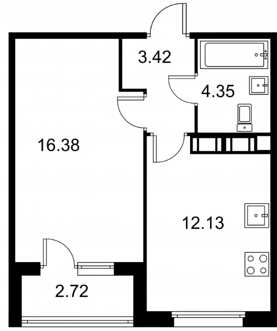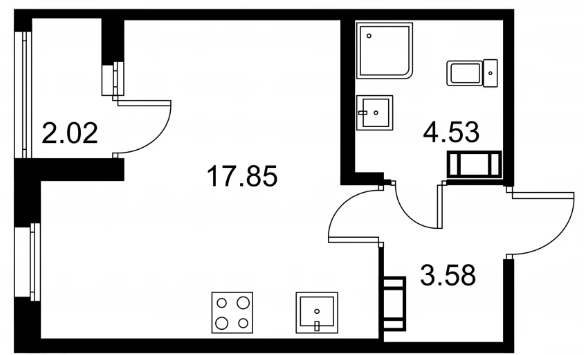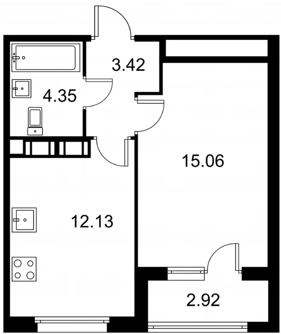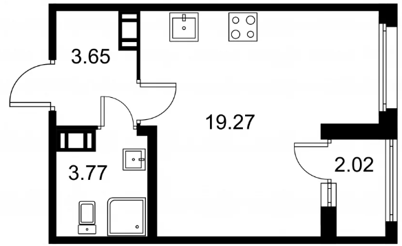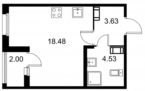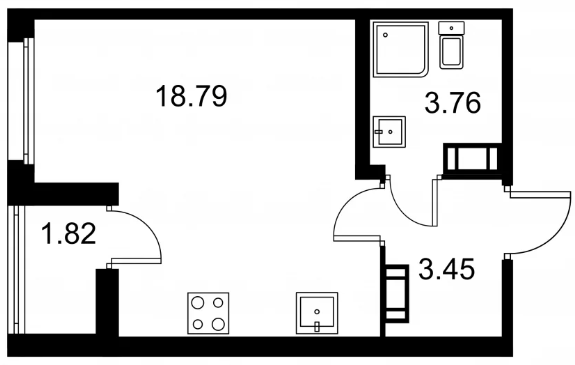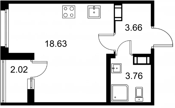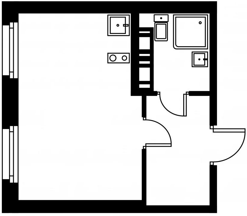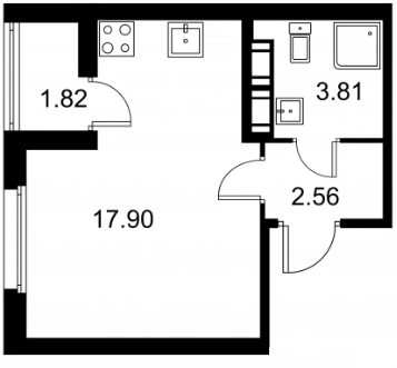 Студия (132 квартиры, 43 планировки)