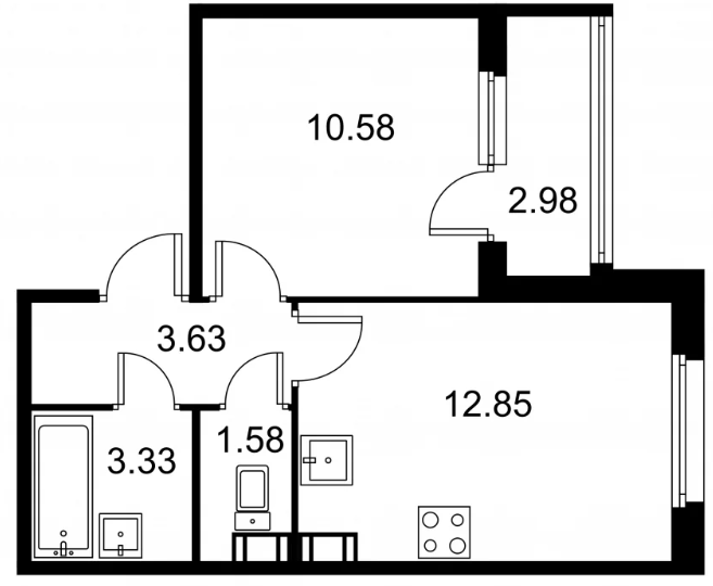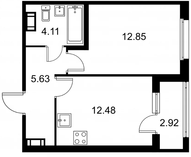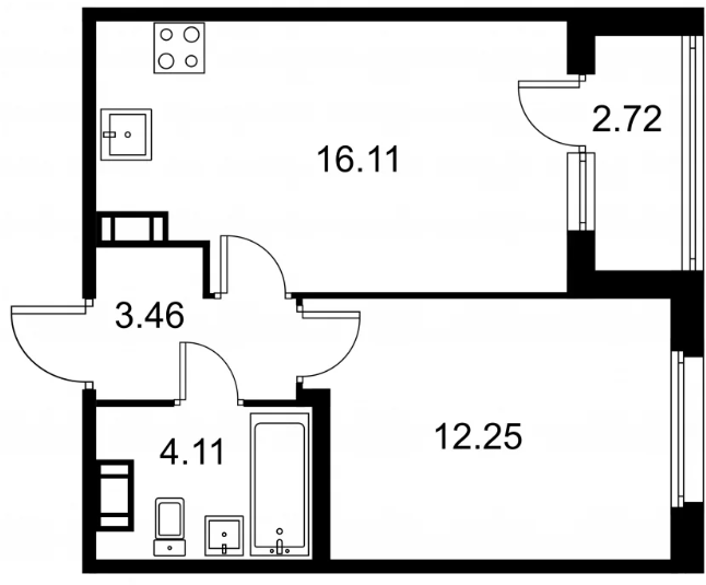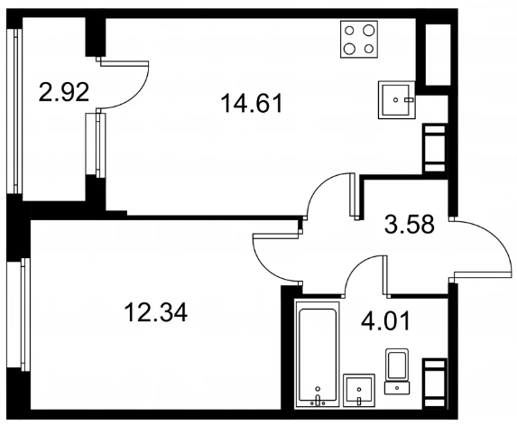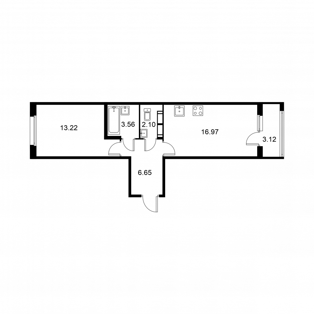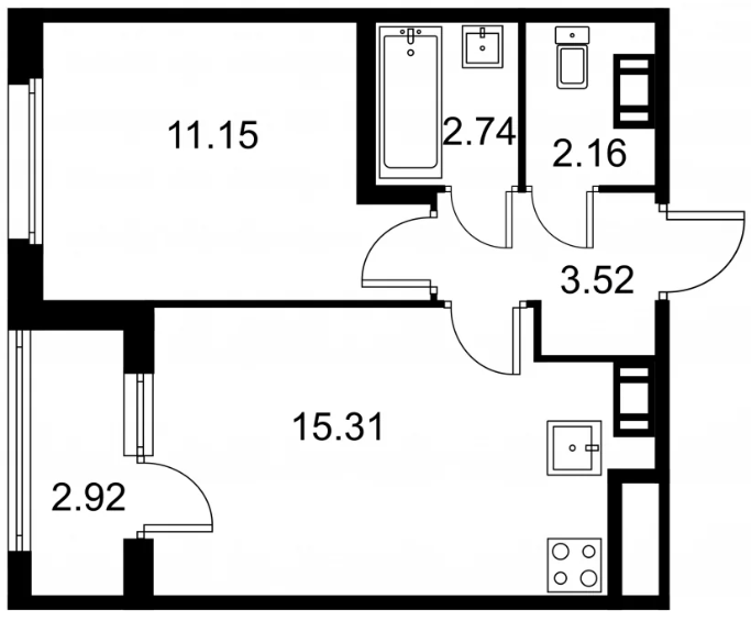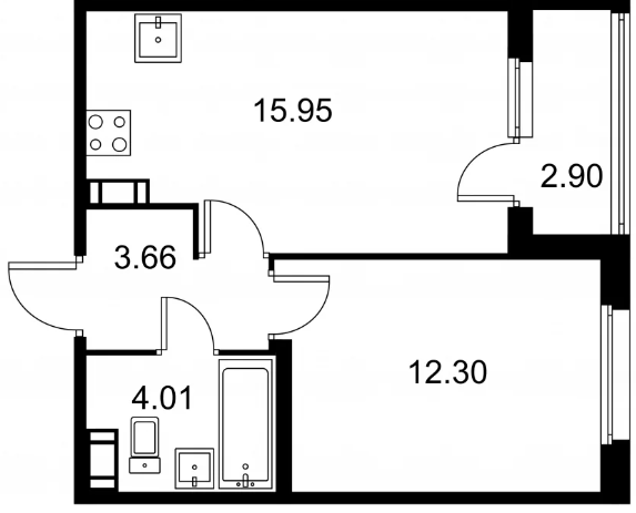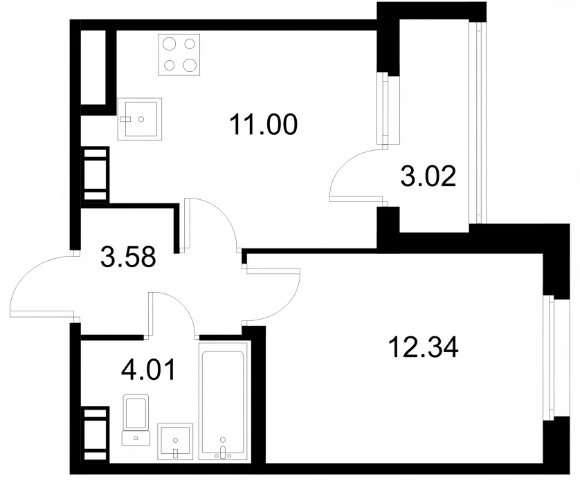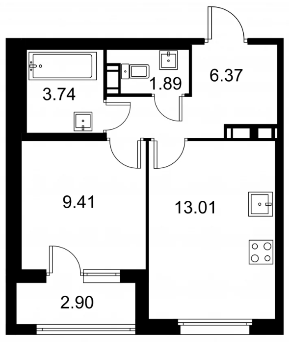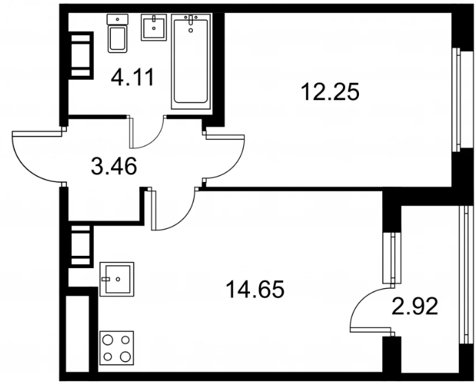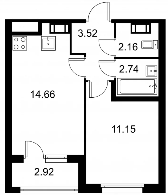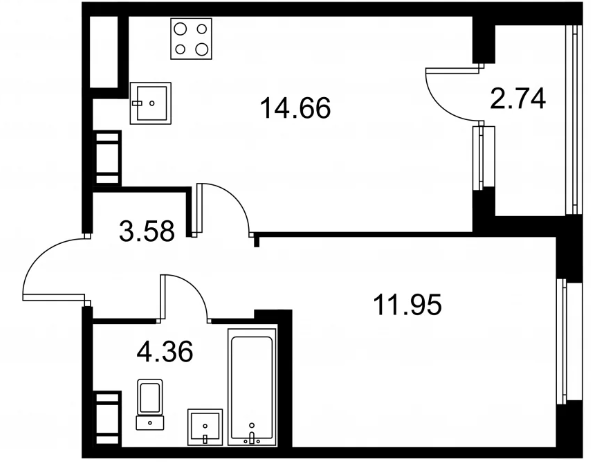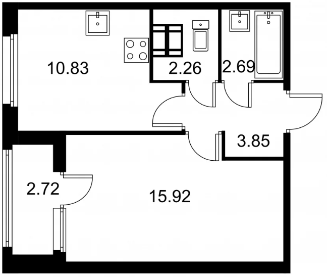Студия (132 квартиры, 43 планировки)