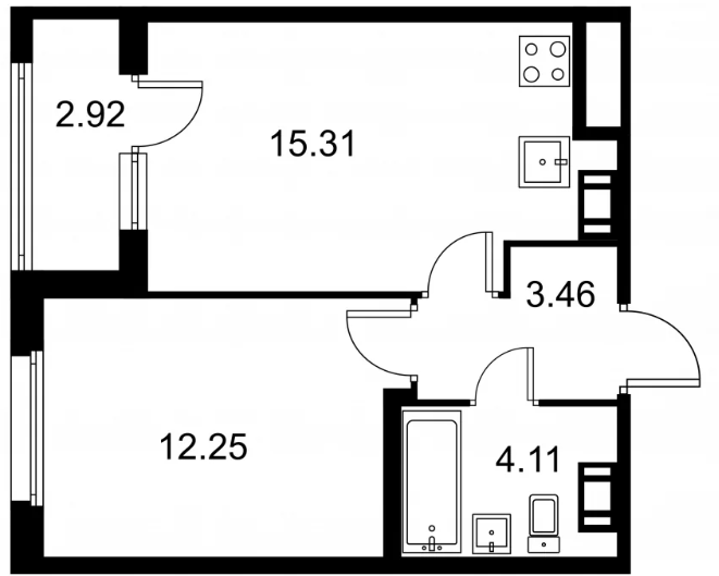 Однокомнатные квартиры (368 квартир, 131 планировка)