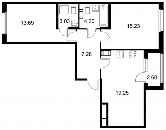 Двухкомнатные квартиры (240 квартир, 87 планировок)