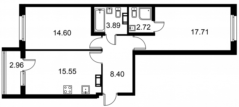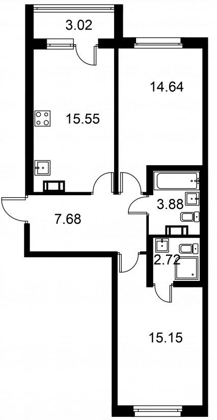 Двухкомнатные квартиры (175 квартир, 57 планировок)
