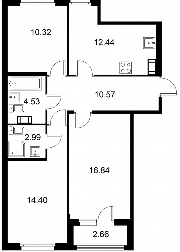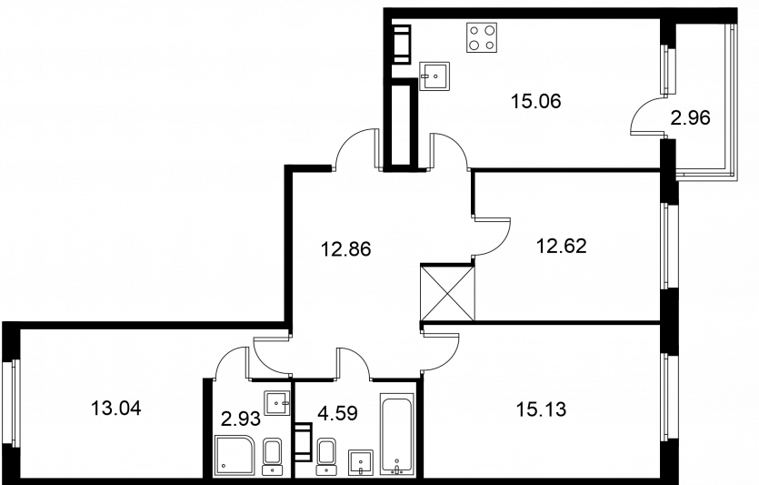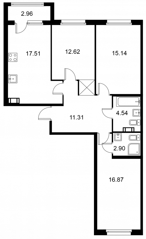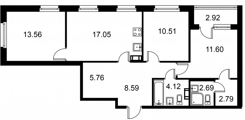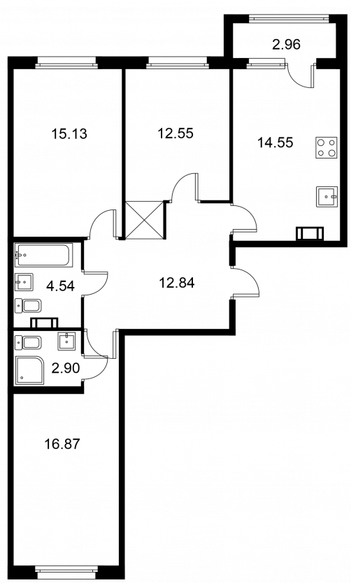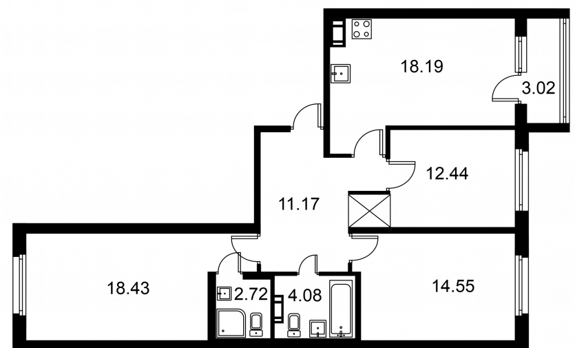 Трехкомнатные квартиры (89 квартир, 18 планировок)