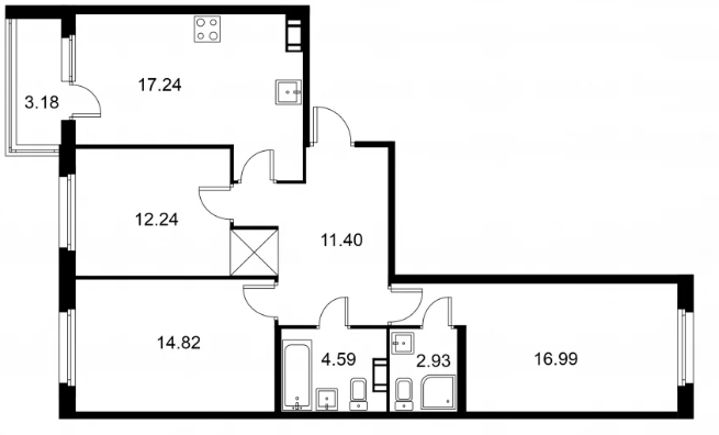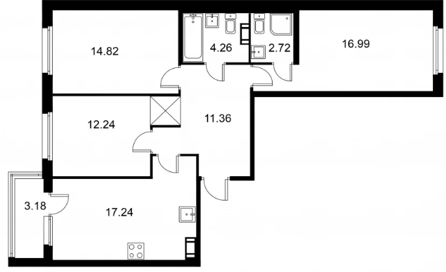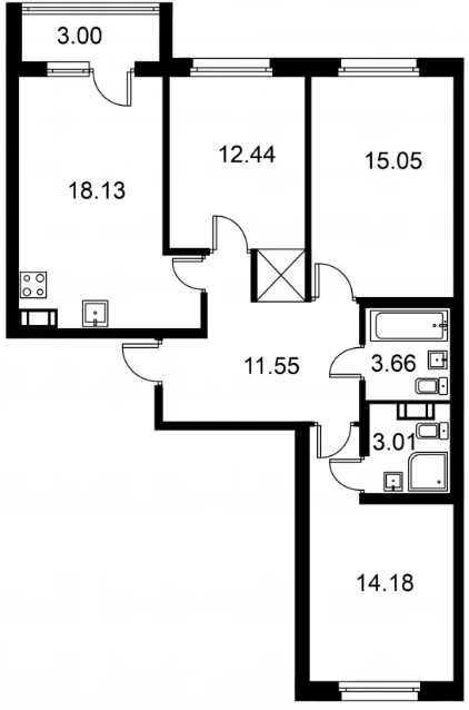 Трехкомнатные квартиры (42 квартиры, 18 планировок)