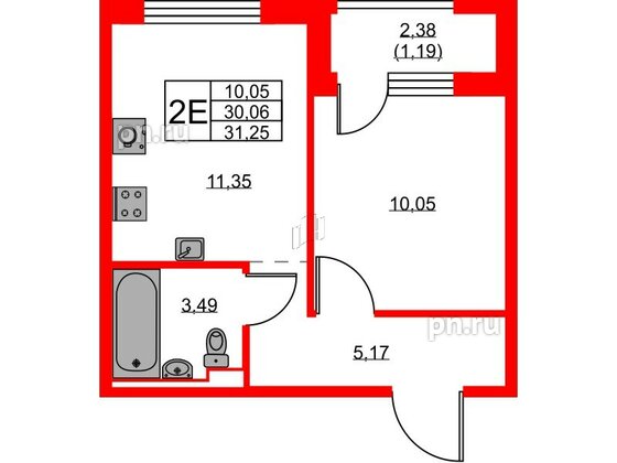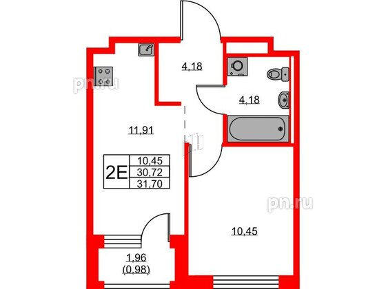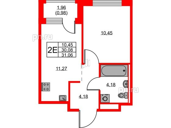 Однокомнатные квартиры (17 квартир, 17 планировок)
