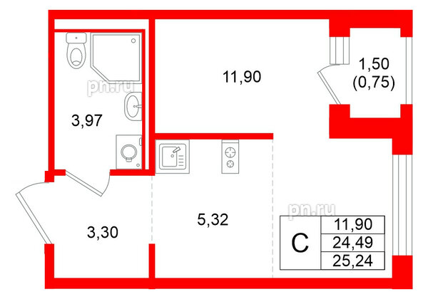 Студия (12 квартир, 12 планировок)