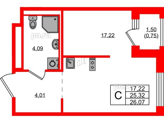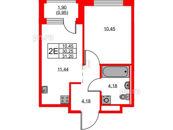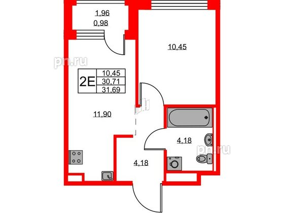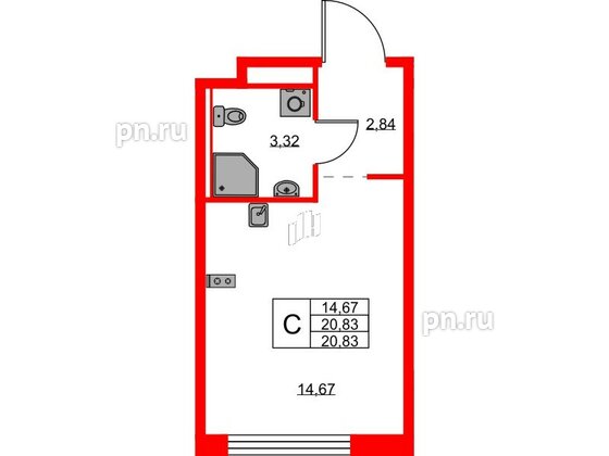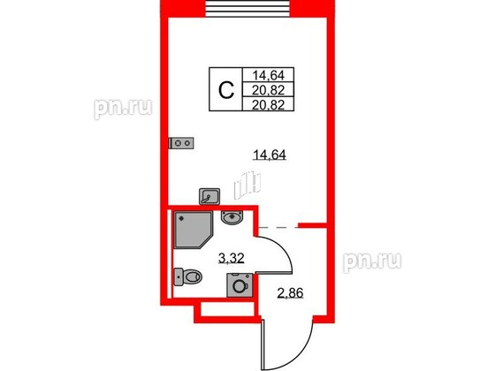 Однокомнатные квартиры (18 квартир, 18 планировок)