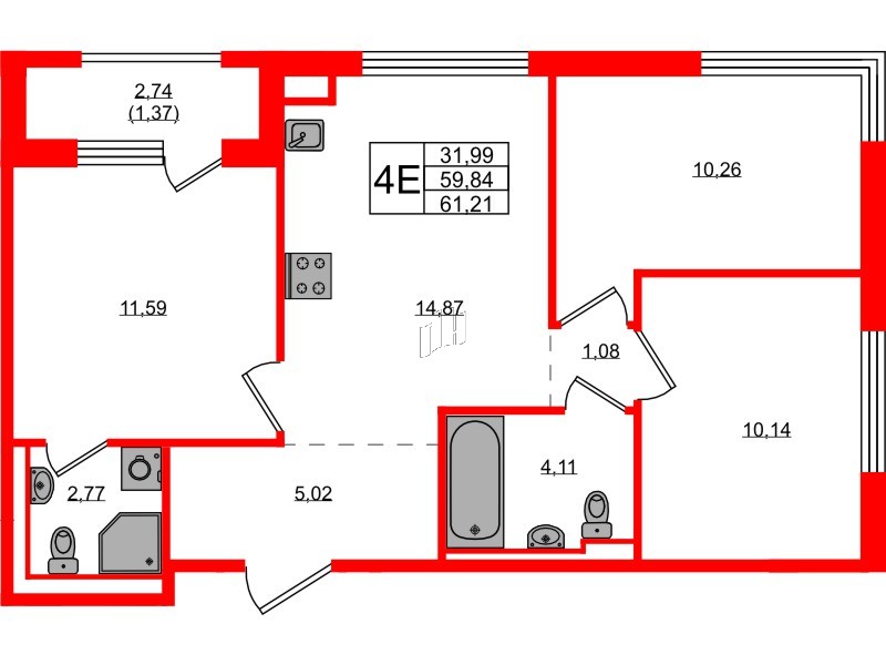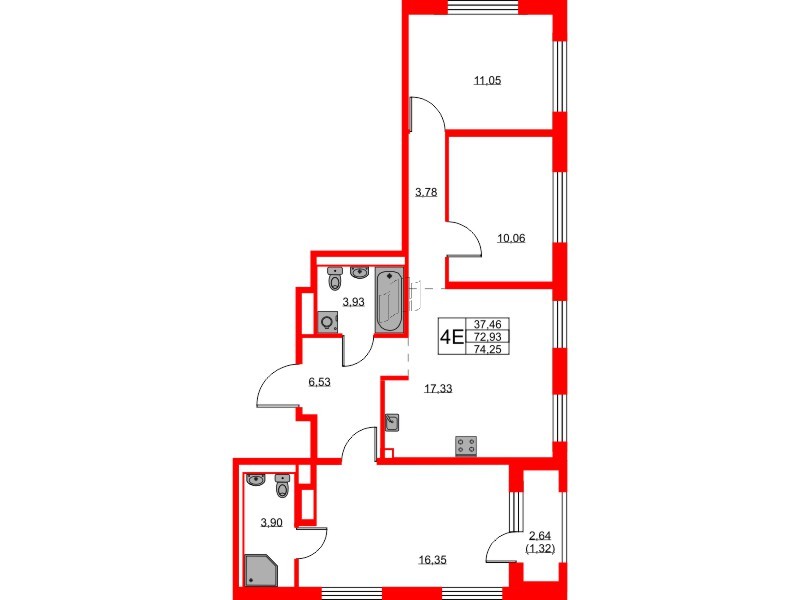 Трехкомнатные квартиры (3 квартиры, 3 планировки)
