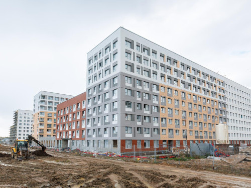 - В части корпусов продолжают монолитные работы — в третьем и четвертом корпусах выполняют бетонирование надстроек кровли. В первом, третьем, четвертом, пятом и шестом корпусах ведут работы по кладке наружных стен, во втором и шестом корпусе выполняют кладку перегородок.