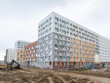 - В третьем корпусе идут работы по кладке фасада на уровне 3 этажа. Начали работы по монтажу окон на первом этаже.