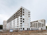 - В первом корпусе идут работы по кладке наружных стен из газобетона на уровне 8-9 этажей.