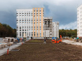 - В первом, втором и четвертом корпусах продолжают кладочные работы: в первом корпусе выполняют наружную кладку на уровне 6-9 этажей, во втором и четвертом корпусах работают на балконах.