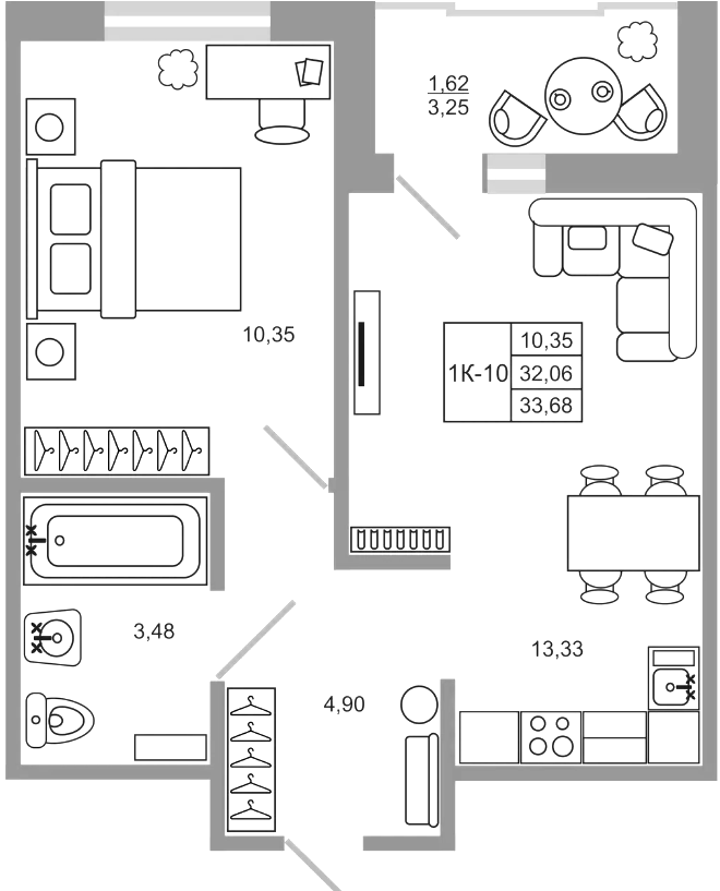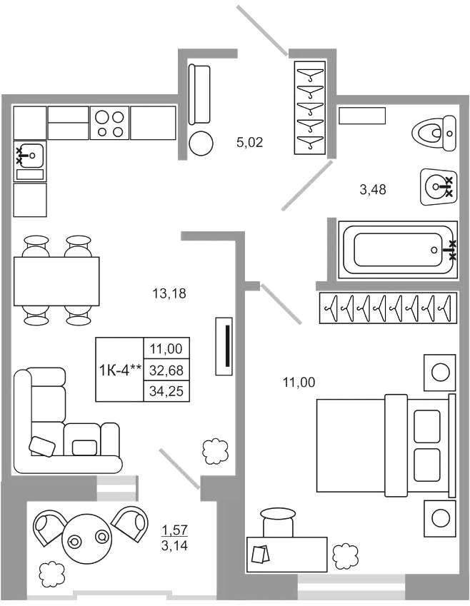 Однокомнатные квартиры (45 квартир, 7 планировок)