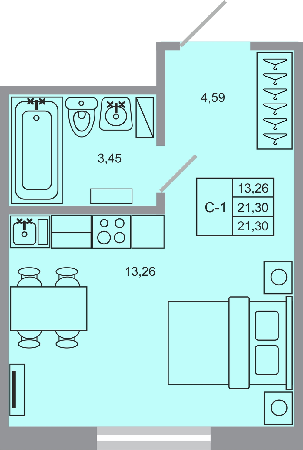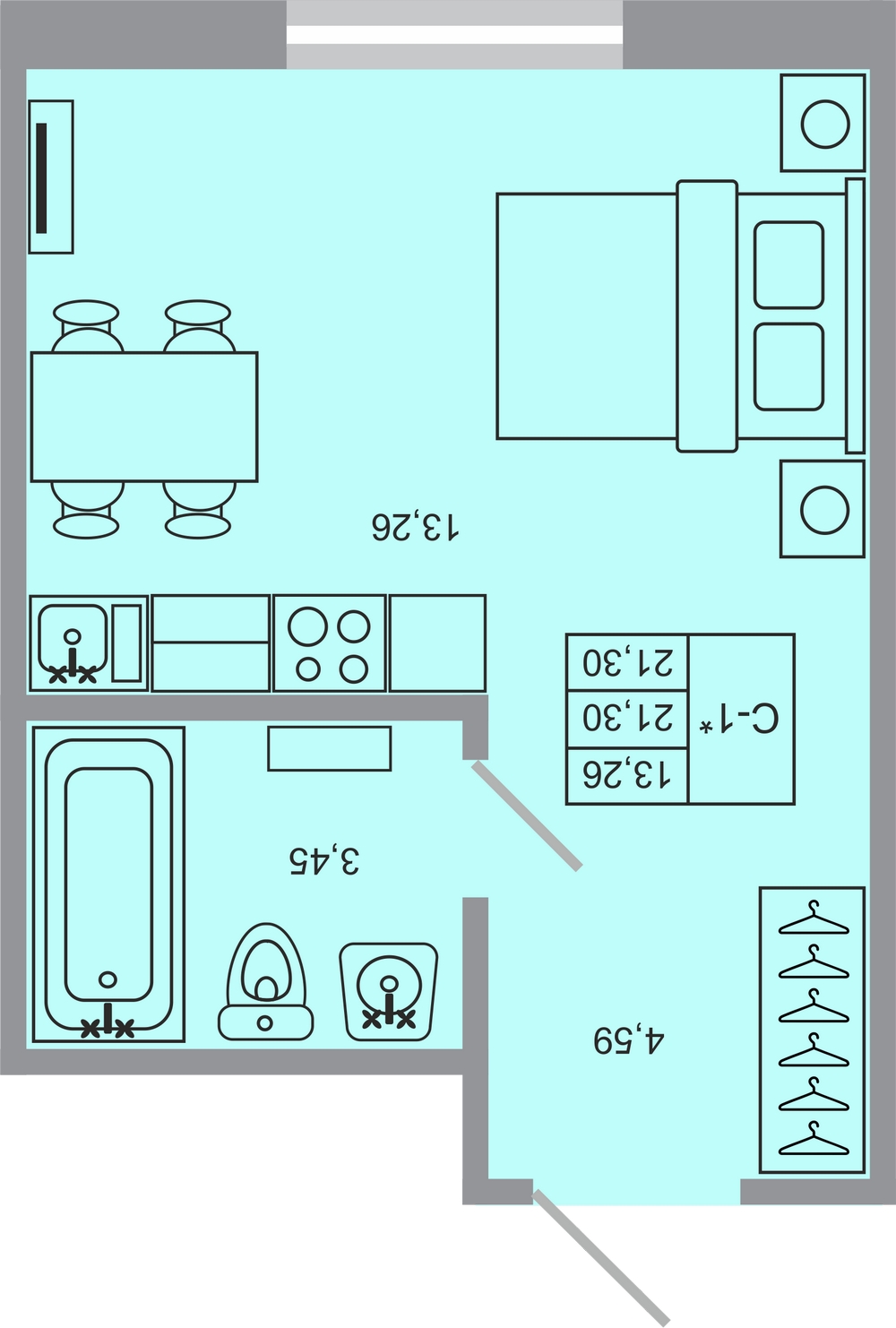 Однокомнатные квартиры (39 квартир, 6 планировок)